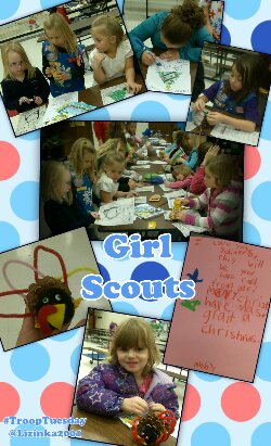 The girls made Christmas cards for the troops overseas and made pinecone turkeys to take home.