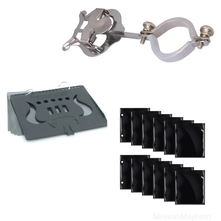 Lyre and flip folder. Learning to march and play music can be challenging. A lyre that attaches to the instrument with a flip folder to hold the music is helpful. Extra windows are also nice to have.