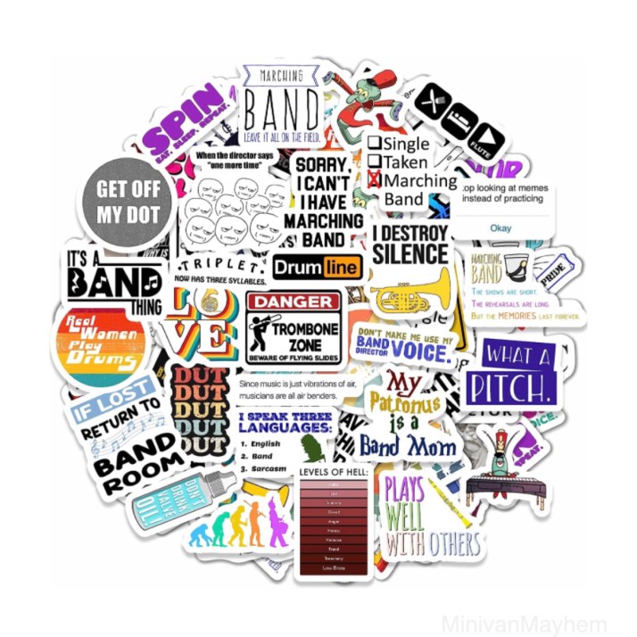 Band stickers. Those band folders are usually pretty boring. Band themed stickers can be a fun band bonding activity and make those folders or chart books more personalized.