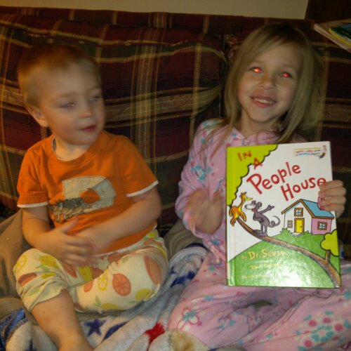 My favorite thing in a people house is a hairbrush. (She was holding her foldable rhinestone covered one while we read.)